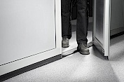 In der Standardausführung hat die Bodenschwelle eine Höhe von ca. 190mm. Als Sonderlösung bieten wir Schlupftüren mit niedriger Schwelle von ca. 15mm an.